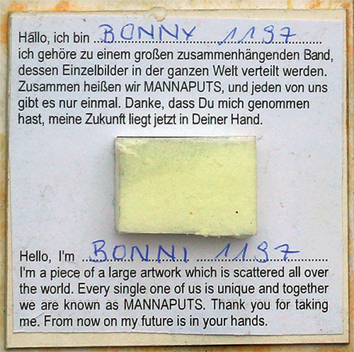 und jeder der sie findet wird durch den Text aufgefordert sie mitzunehmen